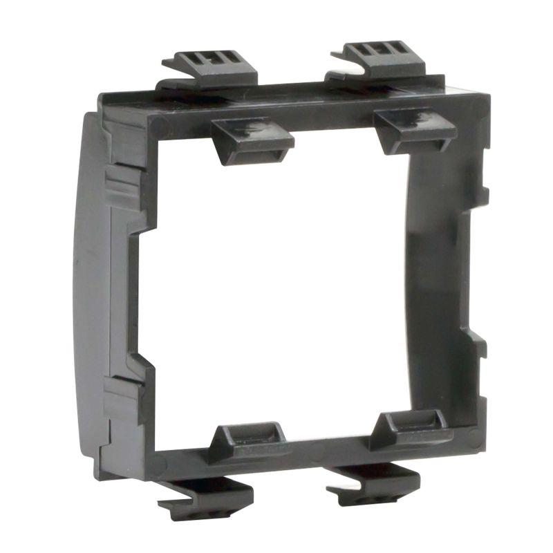 Каркас на 2 модуля для монтажа электроустановочных изделий "Viva". Назначение: монтаж электроустановочных изделий в пластиковые короба "In-liner Front", напольную башенку BUS, алюминиевые короба и колонны "In-liner Aero". Характеристики: материал – АБС-пластик; с двух внешних сторон расположены замки, предназначенные для соединения одинаковых каркасов в ряд и для использования под одной сплошной рамкой. Каркасы для разных серий ЭУИ между собой не соединяются, но монтироваться в ряд под одной рамкой. Цвет черный