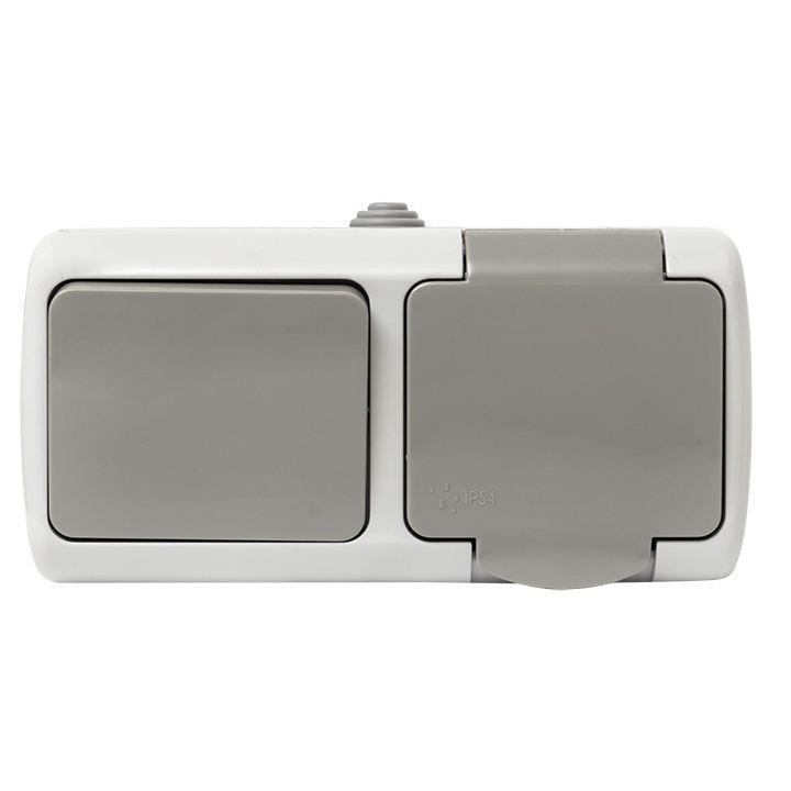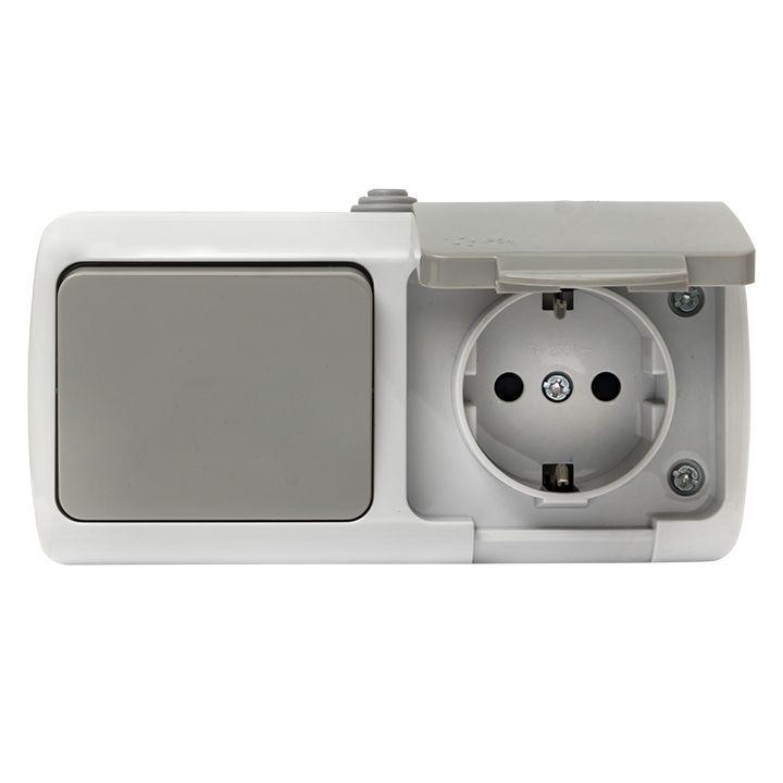 Блок ОП розетка 1-м 16А с заземл. с крышкой+выключатель 1-кл. Мурманск IP54 сер. EKF EFRV16-050-30-540