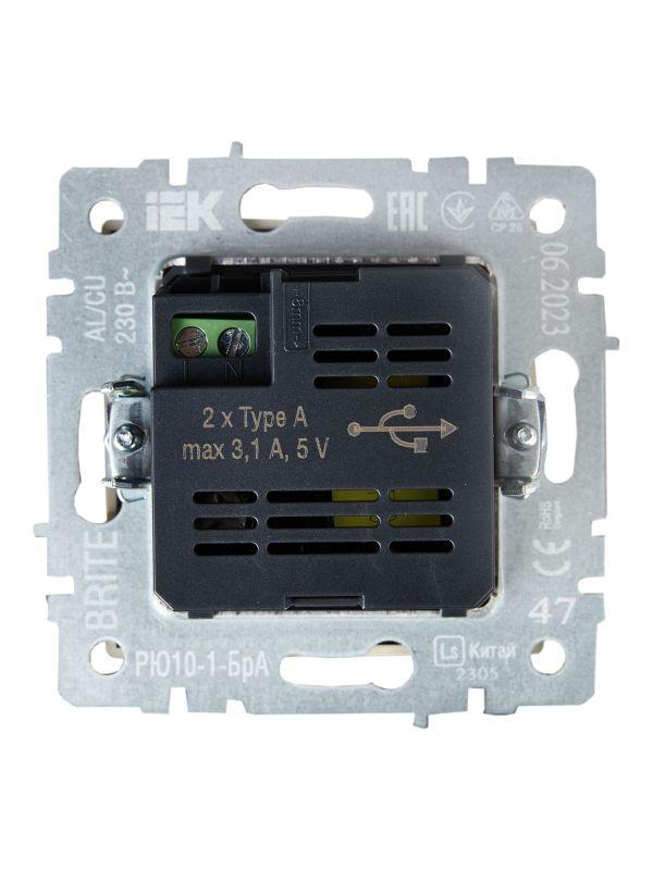 Розетка BRITE USB A+A 3.1А РЮ10-1-БрА алюм. IEK BR-U21-D31-K47