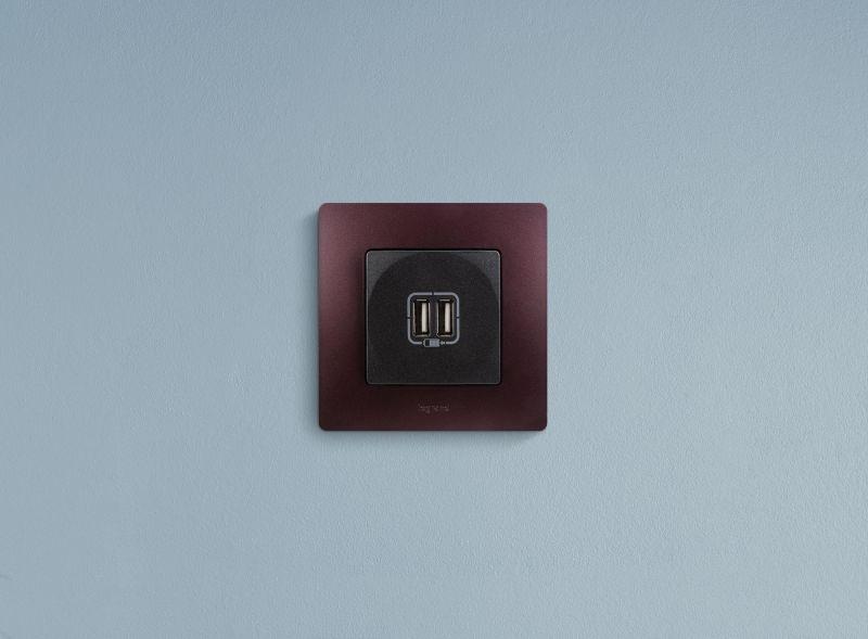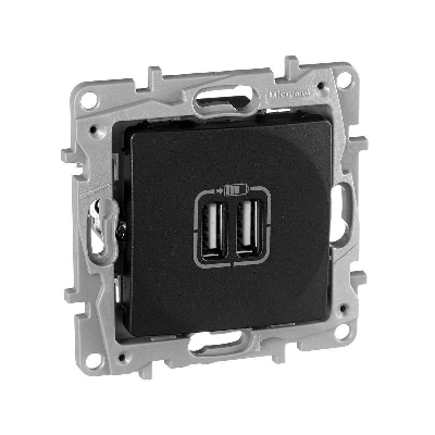 Розетка USB 2-м СП 2мод. Etika 240В/5В 2400мА механизм антрацит Leg 672694