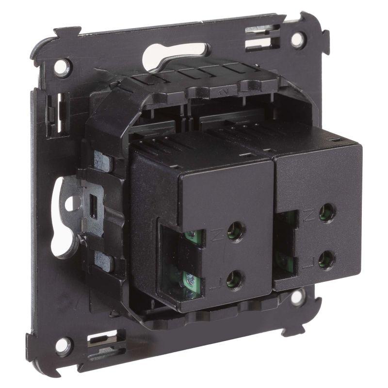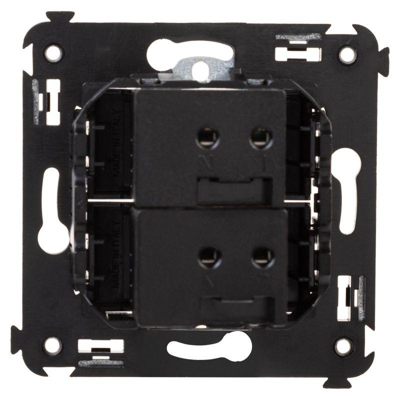 USB зарядное устройство предназначено для скрытого монтажа в стену и рассчитано на номинальный ток 2,1, номинальное напряжение от 220 до 250 В. Пластиковые части устройства имеют цвет "Черный матовый" – этот темный благородный оттенок легко сочетается с любыми цветами и фактурами. Матовая основа придает стильный внешний вид. Изделие имеет два модуля. Материал: металл, термопласт.