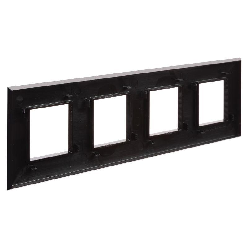 Рамка имеет 4 поста под ЭУИ (максимум 8 модулей). При этом размещаться рамка может как горизонтально, так и вертикально. Габаритные размеры: 305х90 мм. Материал – термопласт.