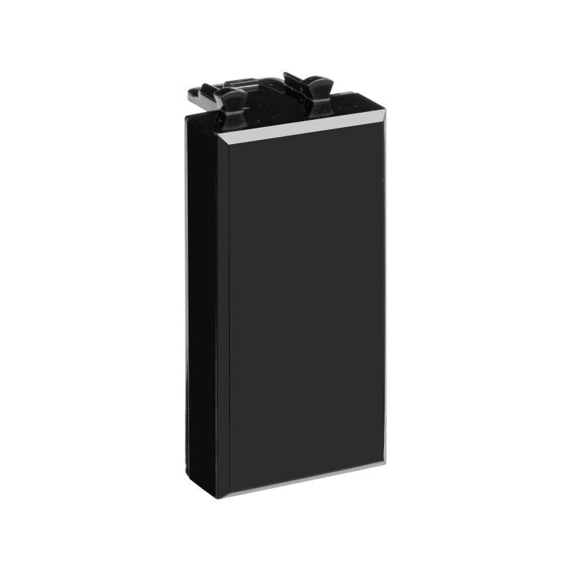 Заглушка модульная применяется в тех случаях, когда планируется установка дополнительных электроустановочных изделий на стену или в кабель-канал, но само изделие пока не установлено. Заглушка закрывает свободное место (1 модуль), сохраняя эстетику ЭУИ. Материал заглушки – пластик. Заглушка подбирается под цвет электроустановочных изделий. Эта модель имеет цвет "Черный квадрат" – насыщенный черный с глянцевым блеском.