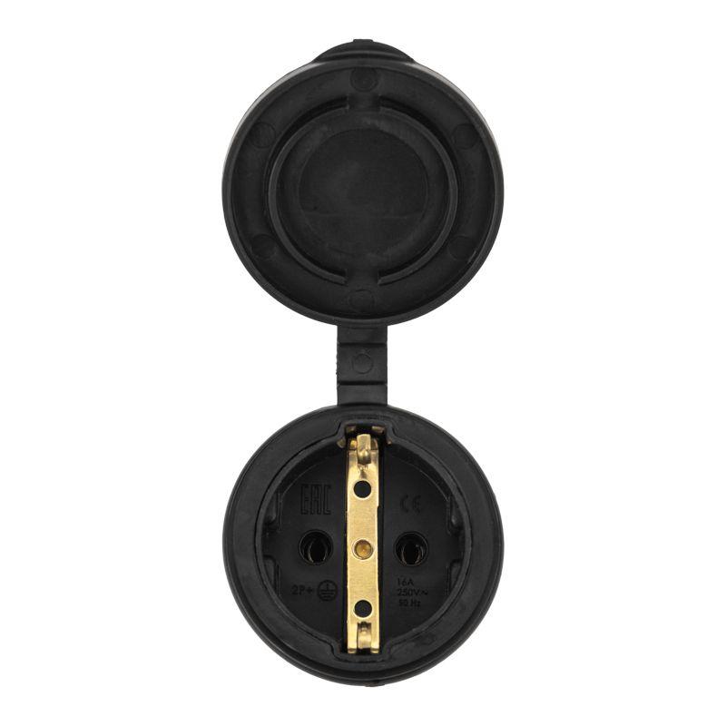 Розетка переносная влагозащ. с крышкой 16А IP44 230В 2P+PE каучук PROCONNECT 111-004-4
