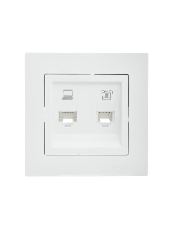 Розетка компьютерная + телефонная 1-м СП Vesna механизм бел. LEZARD 742-0288-143