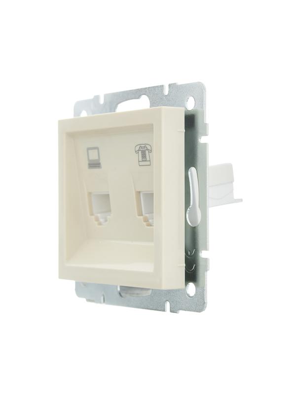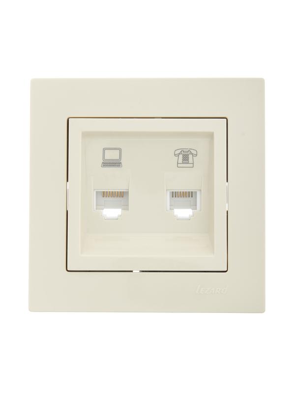 Розетка компьютерная + телефонная 1-м СП Vesna механизм крем. LEZARD 742-0388-143