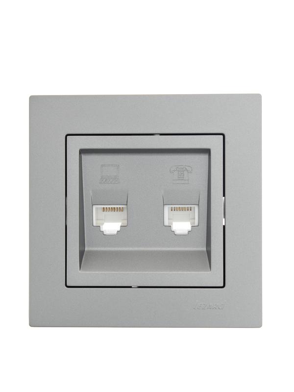 Розетка компьютерная + телефонная 2-м СП Vesna механизм платина LEZARD 742-3588-143