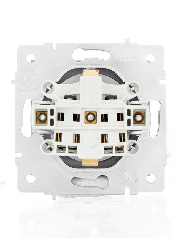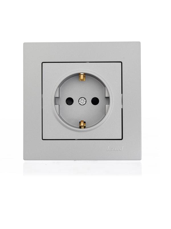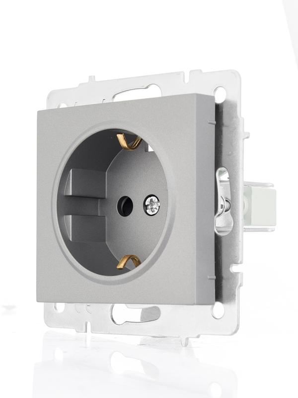 Розетка 1-м СП Vesna с заземл. защ. шторки ПБТ механизм платина LEZARD 742-3588-124B