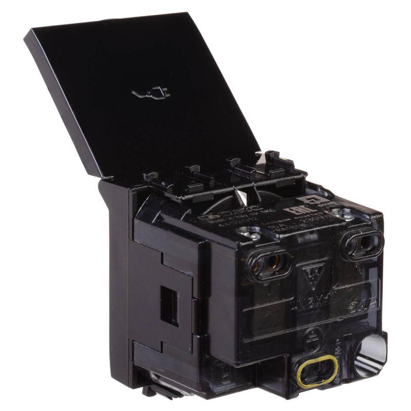 Розетка 1-м 2мод. Avanti "Черный квадрат" 16А IP44 2P+E защ. шторки с крышкой черн. DKC 4402012