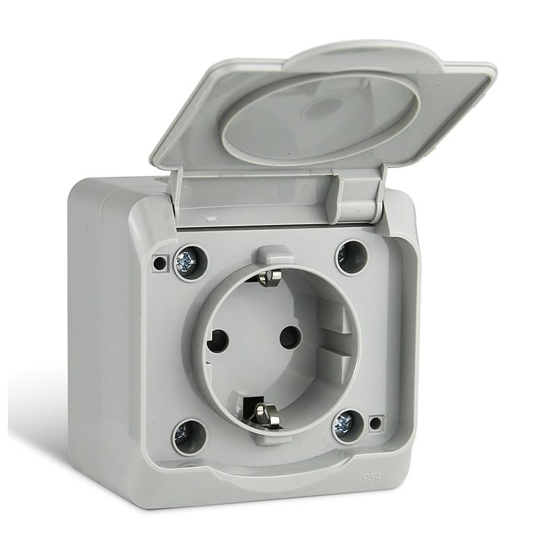 Розетка 1-м ОП Nix 16А IP54 250В с заземл. с крышкой сер. TOKOV ELECTRIC TKE-NX-R1Z-C06-IP54