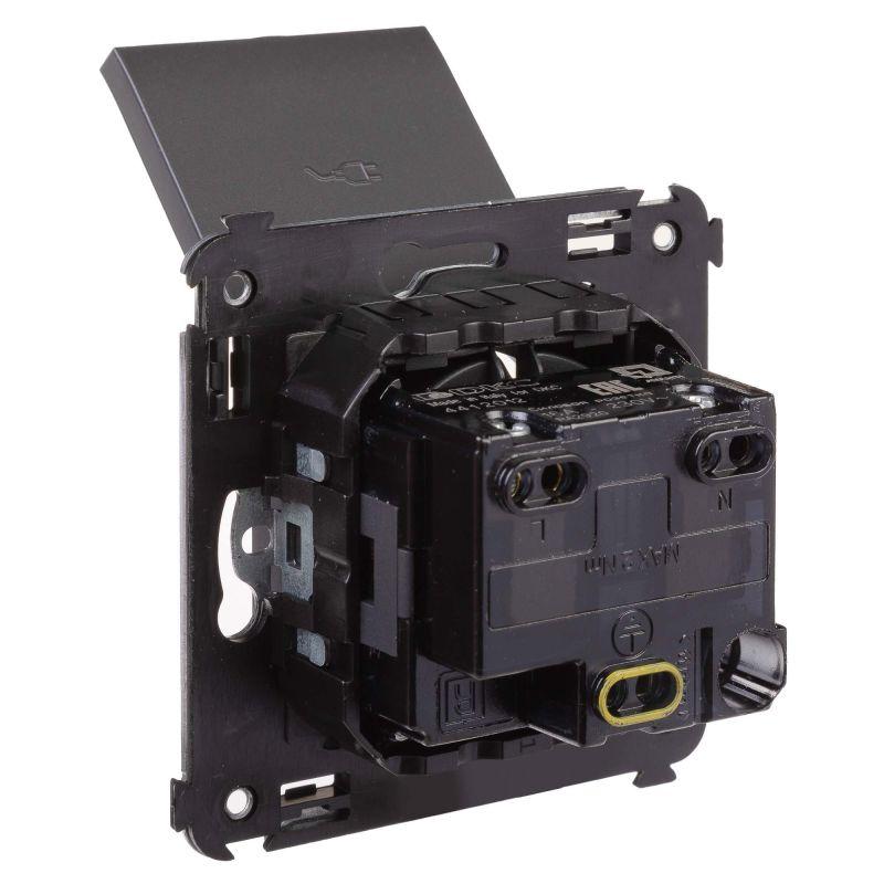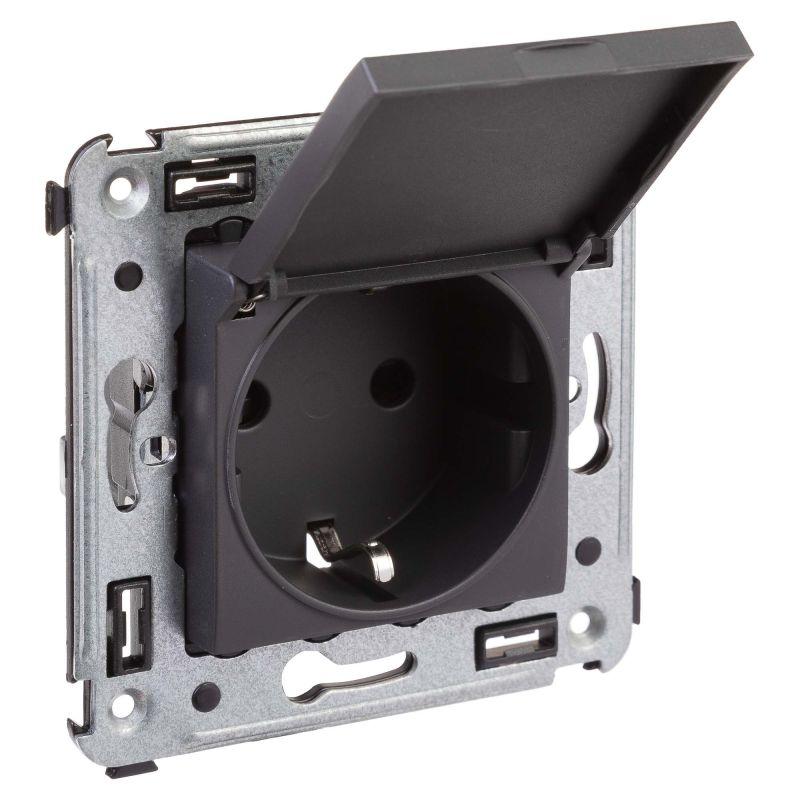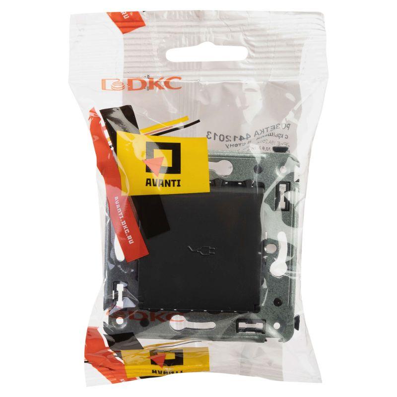 Розетка 1-м СП 2мод. Avanti "Черный матовый" 16А 2P+E защ. шторки с крышкой механизм черн. DKC 4412013