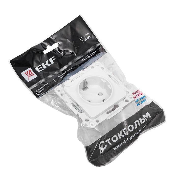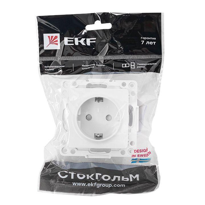 Розетка 1-м СП Стокгольм 16А IP20 с заземл. защ. шторки механизм бел. PROxima EKF EYR16-028-10