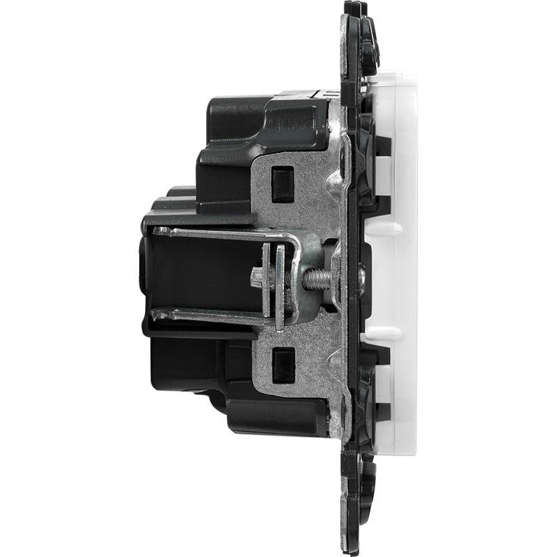 Представляет собой розетку из пластика, с лицевой панелью белого цвета, скрытой установки, монтируемый под штукатурку, на глубине не менее 40 мм. Защитные шторки не предусмотрены.