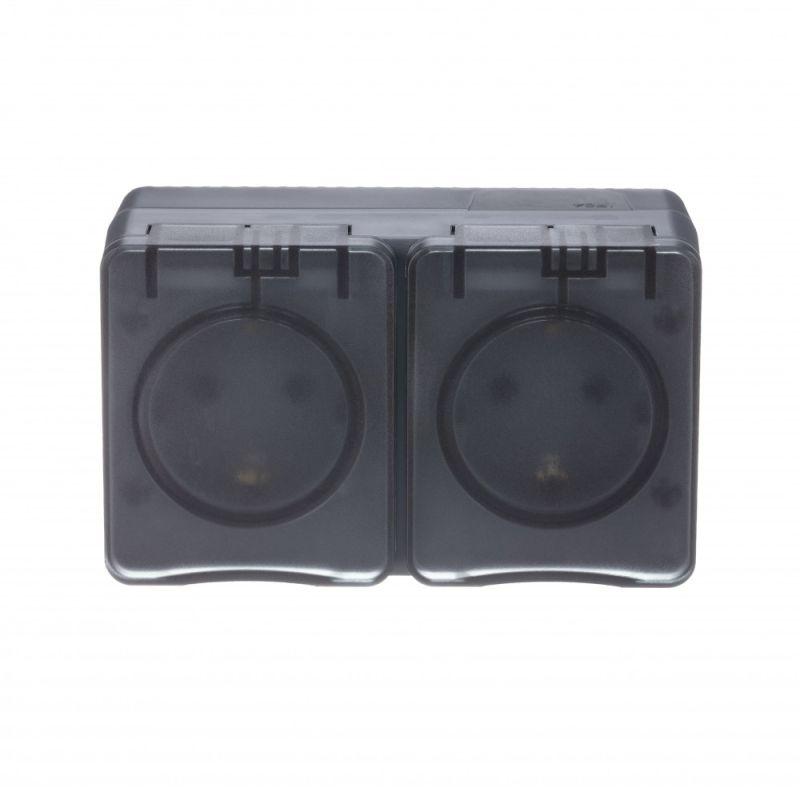 Розетка двойная с заземлением со шторками для открытого монтажа, 16А, 250В.