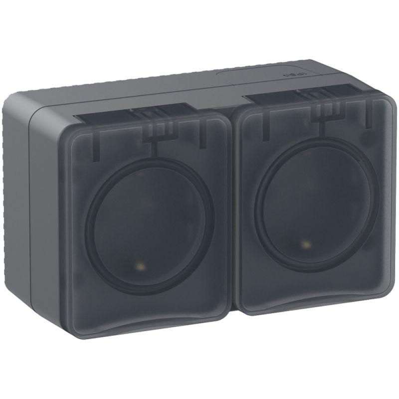 Розетка 2-м ОП AtlasDesign Profi54 16А IP54 250В с заземл. защ. шторки антрацит SE ATN544026