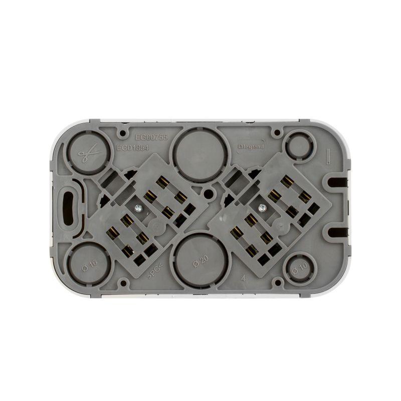 Розетка двухместная без заземления и защитных шторок QUTEO для открытого монтажа. Применяется в зданиях с проводкой без заземляющего контакта. Подходит для жилых комнат, офисов и других помещений со стандартными требованиями к электробезопасности. Надежные винтовые зажимы обеспечивают качественное соединение проводов, а компактные размеры и нейтральный дизайн делают эту розетку универсальным выбором для любого интерьера.