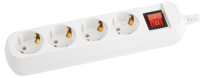 Колодка ЭРА KX-4es на 4 розетки с заземлением, с выключателем. Максимальная мощность - 16 А/3500 Вт. Для кабеля до 3х1,5мм2