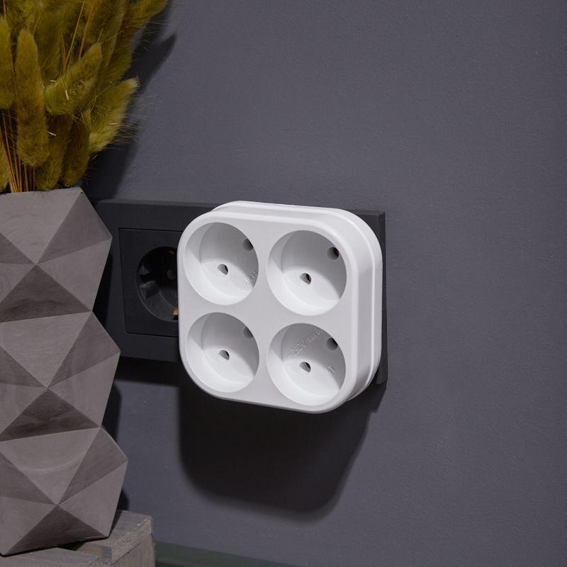 Четверник электрический предназначен для подключения к электрическим сетям с напряжением 220 В. С его помощью вы сможете подключить сразу три электроприбора к одной розетке, будь то холодильник, электрическая плита, электрический чайник, лампа, вентилятор, светильник и другие приборы бытового назначения.