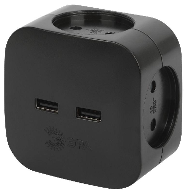 Разветвитель сетевойв форме кубика с закруглёнными угламивыглядит оригинально и отличается компактностью.Розетки утоплены в корпус, благодаря чемувилка плотно сидит в гнезде.Под USB-портами - объёмный логотип ЭРА.Разветвитель-кубик ЭРА в белом цвете -арт. Б0049532, в чёрном цвете -Б0049536.