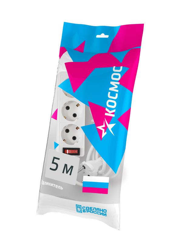 Удлинитель 3х5м с заземл. 10А IP20 ПВС 3х0.75 с выкл. КОСМОС YKsm5m-3g-Z-V(10A)P