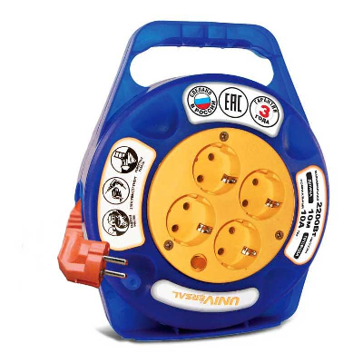 Удлинитель в закрыт. корпусе 4х10м с заземл. 6А IP20 У10-015 ПВС 3х0.75 термозащита защ. шторки UNIVersal 1671