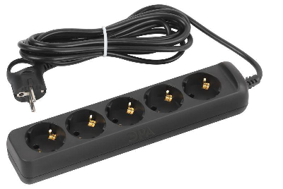 Удлинитель электрический Эра UX-5e-5m-B с заземлением, черный, 5розеток.Провод ПВС, 3x0,75мм2, 5м. Рассчитан на максимальную мощность 10А/2200 Вт. Удлинитель Эра станет Вашим надежным помощником, если Ваши любимые электроприборы находятся далеко от розеток. Провод в удлинителях Эра сделан из 100% меди, что делает его абсолютно пожаробезопасным. Корпус выполнен из ударопрочного и негорючего пластика (полипропилен). Вилка обеспечена кольцом для удобного извлечения ее из розетки. Модель удлинителя на 10А позволяет подключить бытовые приборы общей нагрузкой до 2200Вт. Дизайн удлинителя разработан в России командой Эра Style.