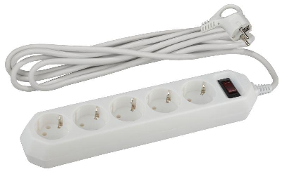 Удлинитель с сетевым фильтром 5х1.5м с заземл. 10А IP20 ПВС 3х0.75 с выкл. бел. Эра Б0019031