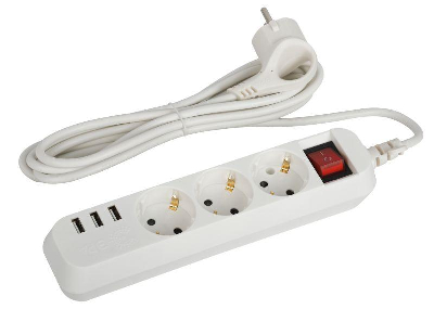 Удлинитель электрический ЭРАU-3es-1,5m-USBс заземлением, с выключателем, 3розетки, 1,5м ПВС 3x0,75мм2. Рассчитан на максимальную мощность 10А/2200Вт. С 3-мя USB гнездами (Type A)для зарядки портативных устройств.Максимальная мощность USB разъемов: 3100 мА.