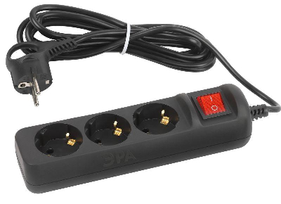 Удлинитель электрический Эра UX-3es-3m-B с заземлением,с выключателем, черный, 3розетки.Провод ПВС, 3x0,75мм2, 3 м. Рассчитан на максимальную мощность 10А/2200 Вт. Удлинитель Эра станет Вашим надежным помощником, если Ваши любимые электроприборы находятся далеко от розеток. Провод в удлинителях Эра сделан из 100% меди, что делает его абсолютно пожаробезопасным. Корпус выполнен из ударопрочного и негорючего пластика (полипропилен). Вилка обеспечена кольцом для удобного извлечения ее из розетки. Модель удлинителя на 10А позволяет подключить бытовые приборы общей нагрузкой до 2200Вт. Дизайн удлинителя разработан в России командой Эра Style.