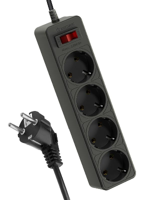 Черный сетевой фильтр с коротким проводом 1,5м на 4 гнезда с двумя защитами для гаджетов и дорогой техники – варистор для защиты от «плохого» тока и терморазмыкатель для защиты от перегрузки и замыкания в сети. Сзади специальное крепление – можно повесить на стену. Корпус из негорючего полипропилена, 100% медный кабель ПВС 3х0,75мм (с заземлением). Контактная группа из латуни не деформируется со временем. Максимальная мощность подключения 2200Вт – хватит для нескольких устройств одновременно. 5 лет гарантии