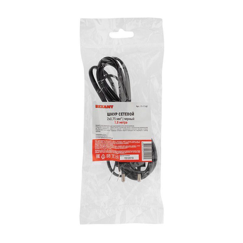 Шнур сетевой 1.8м ШВВП 2х0.75 черн. Rexant 11-1142