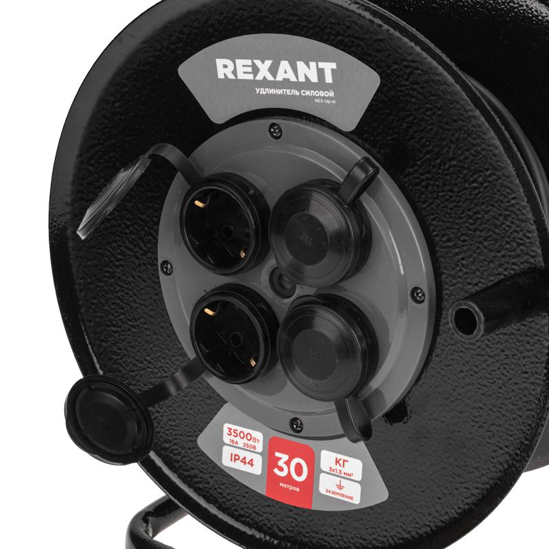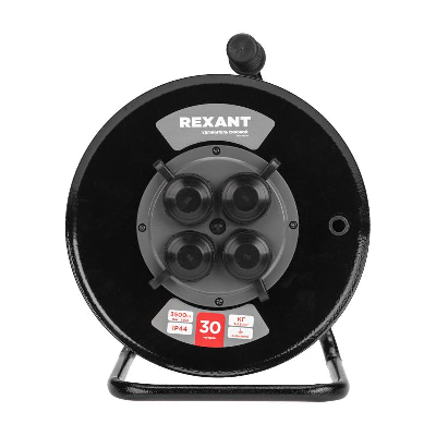 Удлинитель силовой КГ на катушке 4 гнезда с/з 30м 3х1.5кв.мм IP44 c защитными крышками метал. катушка Rexant 13-5011