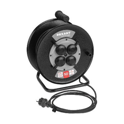 Удлинитель силовой КГ на катушке 4 гнезда с/з 50м 3х1.5кв.мм IP44 c защитными крышками метал. катушка Rexant 13-5013