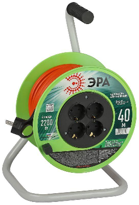 Удлинитель силовой RP-4e-3х1.0-40m на пластиковой катушке с заземлением 4 розетки 40м ПВС 3х1мм2 Эра Б0056100