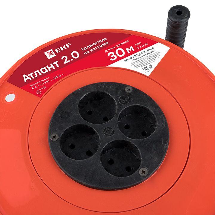 Удлинитель на катушке 4х30м без заземл. 6А IP20 Атлант 2.0 1.3кВт ПВС 2х0.75 PROxima EKF UKA02-06-275-4-30