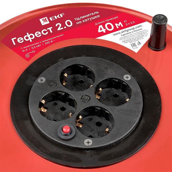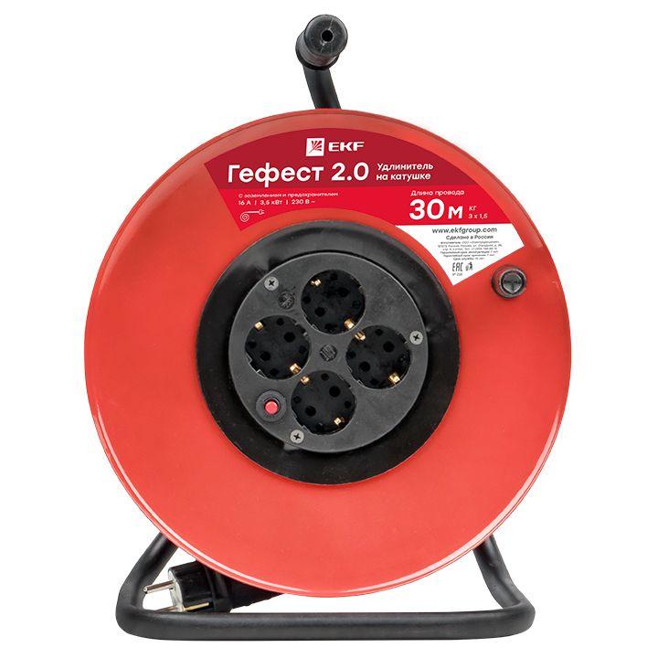 Удлинитель на катушке 4х30м с заземл. 16А IP20 Гефест 2.0 3.5кВт КГ 3х1.5 с предохранителем PROxima EKF UKG02-16-R315-4-30