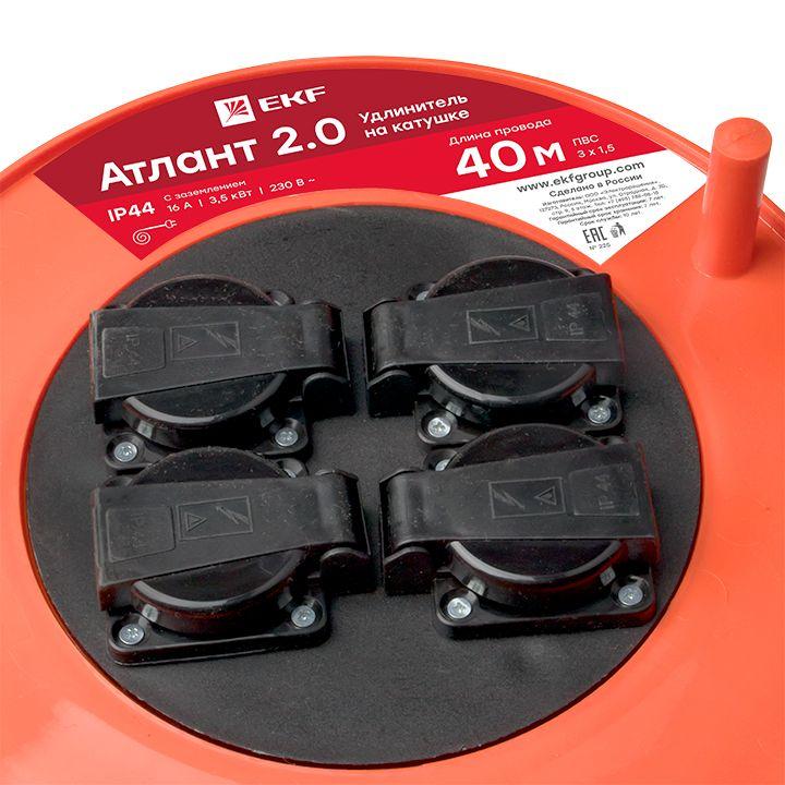 Удлинитель на катушке 4х40м с заземл. 16А IP44 Атлант 2.0 3.5кВт ПВС 3х1.5 PROxima EKF UKA02-16-315-4-40-IP44