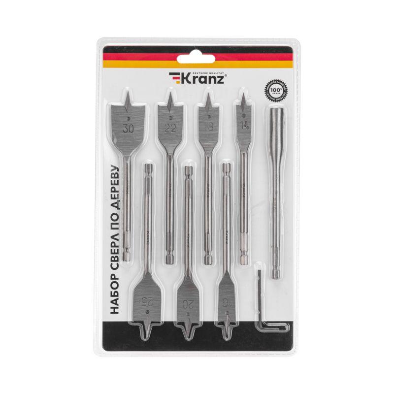 Набор сверл перовых по дереву 9 предметов: 14-16-18-20-22-25-30х152мм удлинитель ключ угловой Kranz KR-91-0762