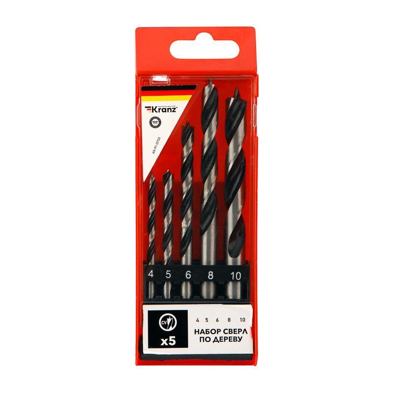 Набор сверл по дереву 4-10мм 5шт Kranz KR-91-0750