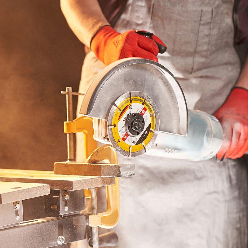 Сегментный алмазный отрезной диск предназначен для сухой резки строительных материалов, таких как природный и искусственный камень, армированный и неармированный бетон, кирпич, керамика, керамогранит. Используется в угловых шлифовальных машинах, ручных электрических плиткорезах, а также в штроборезах.