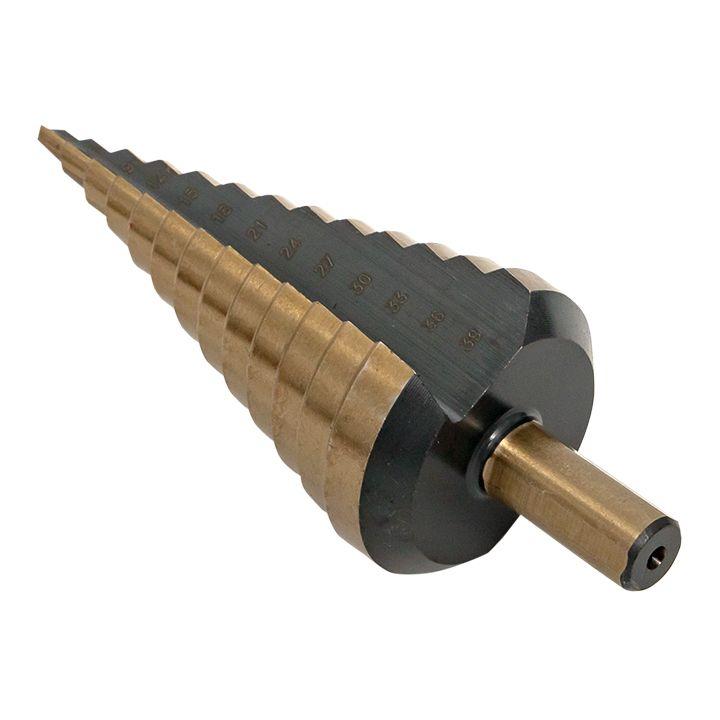 Ступенчатые сверла применяются для быстрого и малошумного сверления отверстий большого диаметра в листовых материалах- металле и пластике с помощью ручных электрических или аккумуляторных инструментов. В электромонтаже удобно применять при сверлении отверстий под сигнальные лампы, тумблеры, сальники и т.п. В ассортименте четный и нечетный ряд для различных видов работ. Изготовлены из быстрорежущей стали, легированные кобальтом для повышения износостойкости. При сверлении отверстия сразу снимается фаска- не требуется дополнительная обработка края отверстия.
