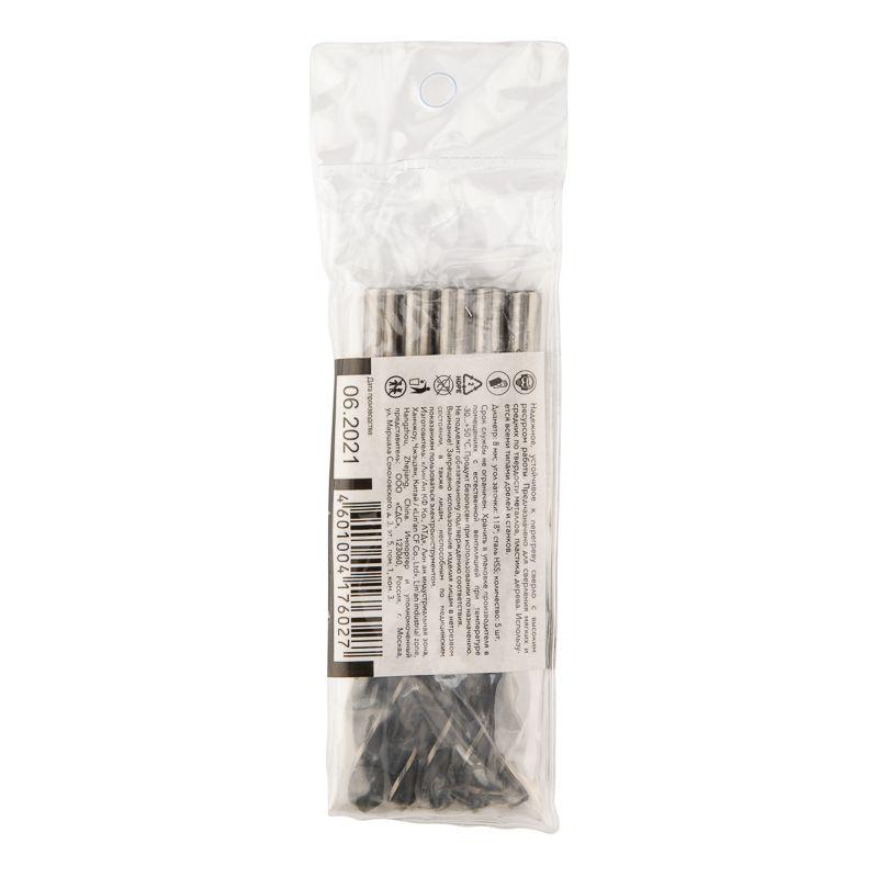 Сверло по металлу 8.0мм HSS DIN 338 (уп.5шт) Kranz KR-91-0625