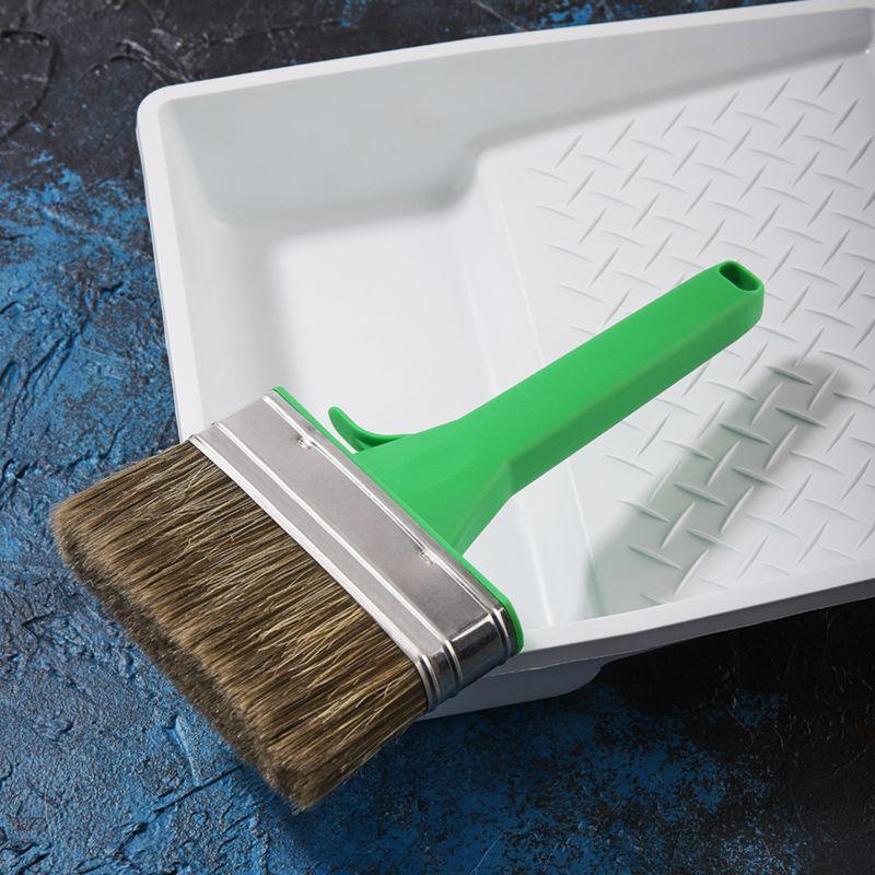 Может применяться с эмалями и для проведения фасадных работ. Эргономичная пластиковая ручка кисти удобна в применении. Широкая кисть позволяет равномерно прокрасить большие плоские поверхности, стены и потолки.