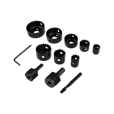 Набор коронок популярных диаметров предназначен для вырезания круглых отверстий в древесине, ДСП, ДВП, пластике. Позволяет сделать отверстия для установки розеток, выключателей, светильников, также будет полезен при установке труб.
