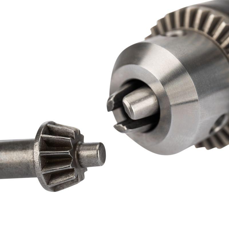 За счет рельефной поверхности с патроном удобно работать, так как он не выскальзывает из рук. К патрону прилагается ключ для смены и фиксации сверл.