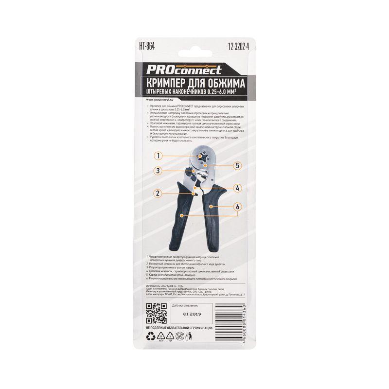 Кримпер для обжима штыревых наконечников 0.25-6.0кв.мм (HT-864) (HY-UD64) PROCONNECT 12-3202-4