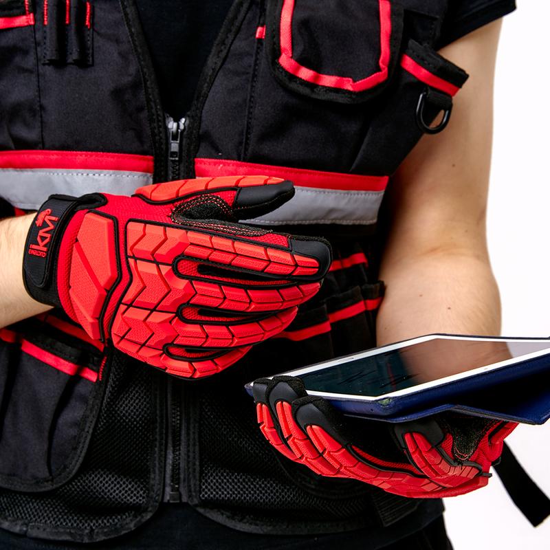 Защитные перчатки монтажника с усиленной амортизирующей вставкой на ладони. Предназначены для работы с тяжелым электро- и пневмоинструментом, а так же со строительным оборудованием. Обеспечивают хорошее сцепление с предметами, предотвращая их выскальзывание. Внешняя сторона выполнена из дышащего материала – спандекса. Амортизирующая вставка из резины с тыльной стороны разработана для защиты костяшек от ударов и повреждений экстремальной интенсивности. Благодаря эластичным материалам плотно облегают кисть руки. Надёжная застёжка на липучке отлично фиксирует перчатку на запястье. Подходят для уверенной работы с любыми типами смартфонов и планшетов. Рекомендуем производить монтажные работы с использованием профессиональной экипировки монтажника серии ЭКСПЕРТ СИСТЕМА КМ®.