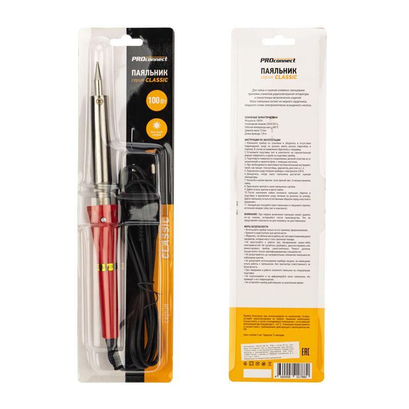 Паяльник с керам. нагревателем долговечное жало 220В/100Вт PROCONNECT 12-0126-4