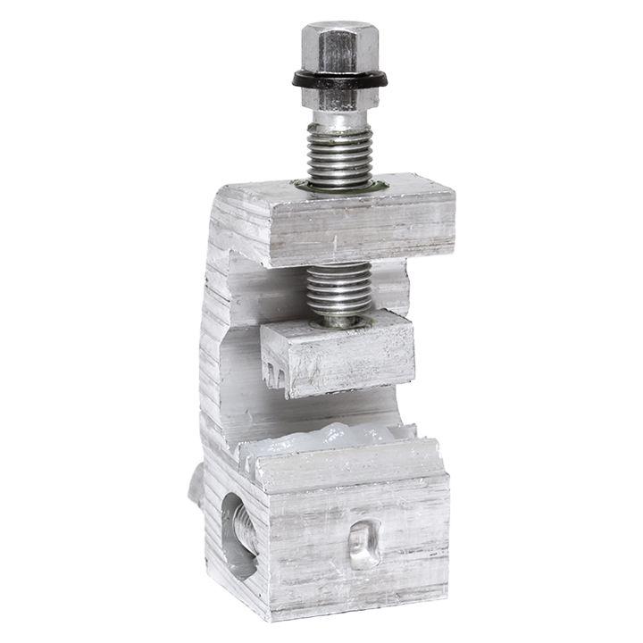 Зажим типа p-72 предназначен для создания электрического соединения изолированных магистральной и ответвительной линии СИП. Имеют раздельную затяжку болтов на магистральной и ответвительной линии. При подключении ответвительных проводов необходимо зачистить концы от изоляции. Контакт с изолированным проводом магистрали обеспечивается прокалыванием изоляции, с зачищенным проводом – прижимной пластиной. При достижении момента, необходимого для создания надежного электрического контакта, происходит срыв головки болта магистральной линии. Два отдельных болта на ответвительной линии позволяют подключать сразу два потребителя от одного зажима и производить многократное переподключение, не снимая зажим с магистрали. Поставляется в комплекте с защитным кожухом. На прокалывающие и прижимные элементы нанесена контактная смазка. Выпадающие компоненты отсутствуют. Зажим и кожух устойчивы к УФ излучению, повышенной и пониженной температуре, к тепловому и световому воздействию солнечной радиации.