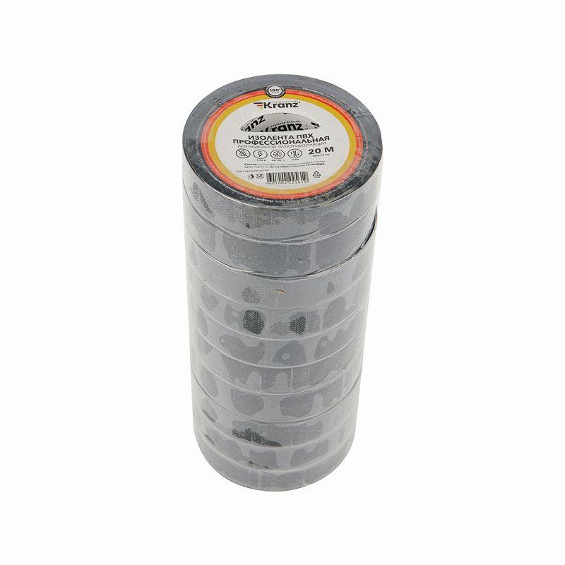 Изолента ПВХ профессиональная 0.18х19мм 20м черн. Kranz KR-09-2806